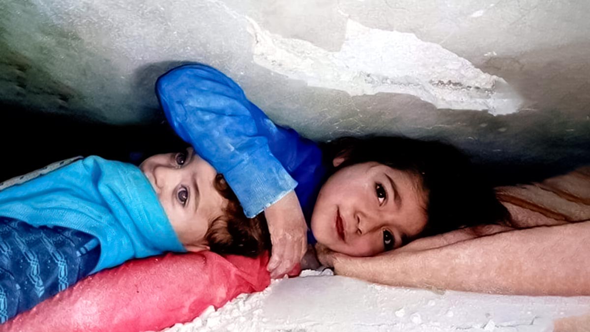 a seven-year-old girl kept her hand on her little brother’s head to protect him — even as her leg was pinned beneath debris.