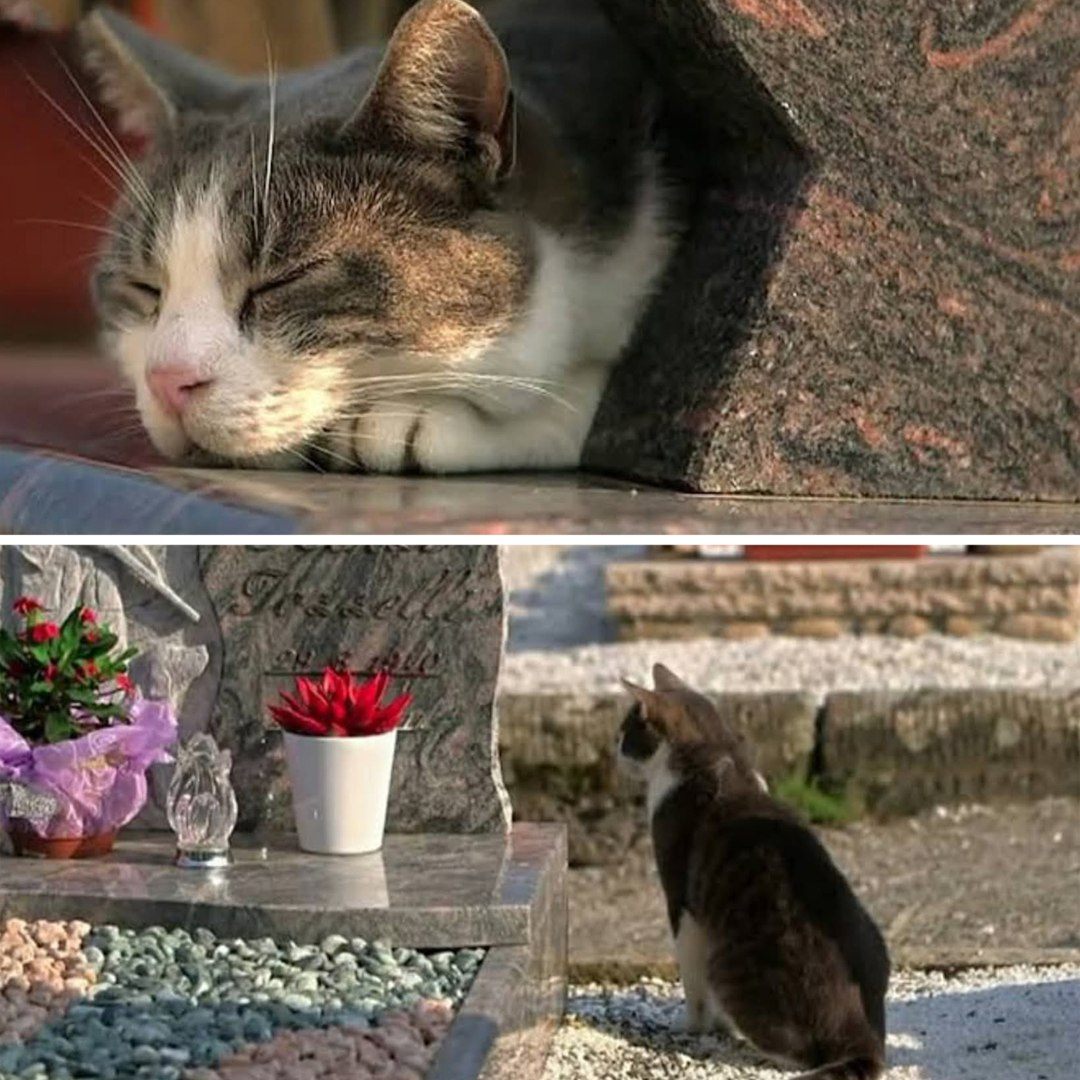 For more than a year, this faithful cat kept vigil — mourning not with cries, but with presence. With the soft rituals of memory, with the kind of loyalty that humans can only hope to match. 🌙