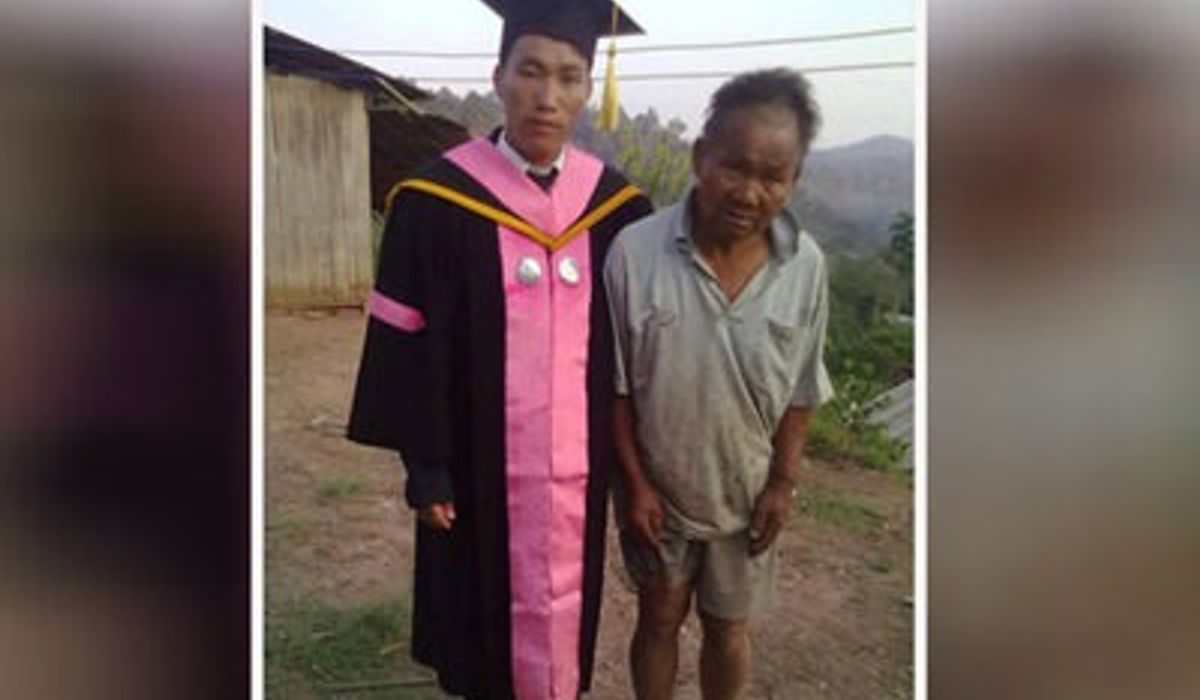 a photo from Thailand went viral — a proud graduate standing beside his father, a Hmong farmer with worn clothes and calloused hands.