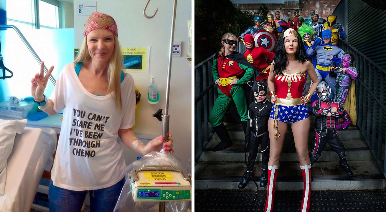 Dressed as Wonder Woman, she sat on that big white hospital bed like a queen on her throne.