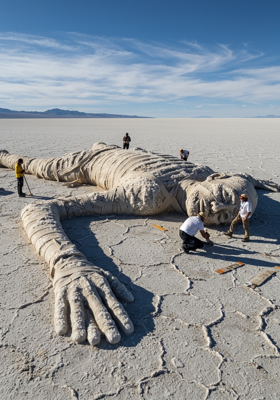 1. BREAKING NEWS: Giant Mummified Being Unearthed in Salt Desert – The Terrifying Revelation of a Colossal Humanoid