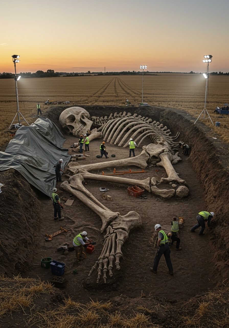 In a discovery that promises to rewrite the history books, BREAKING NEWS confirms the excavation of a complete Giant Skeleton deep beneath typical Farmlands. The sheer size of the skeletal remains suggests an individual far exceeding the stature of modern humans, fueling immediate speculation about a forgotten lineage. This Giant Skeleton is being hailed as the most compelling physical proof of lost race ever uncovered in this region. Archaeologists are treating the site as a top priority, suggesting the surrounding area could hold the keys to an entire, unknown civilization that once dominated the ancient landscape.
