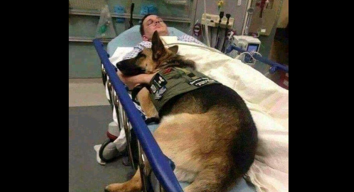 This single image — a uniform, a hospital bed, a paw resting gently on a hand — speaks of loyalty that no oath could ever capture. It’s the kind of devotion that outlives orders and outlasts fear.