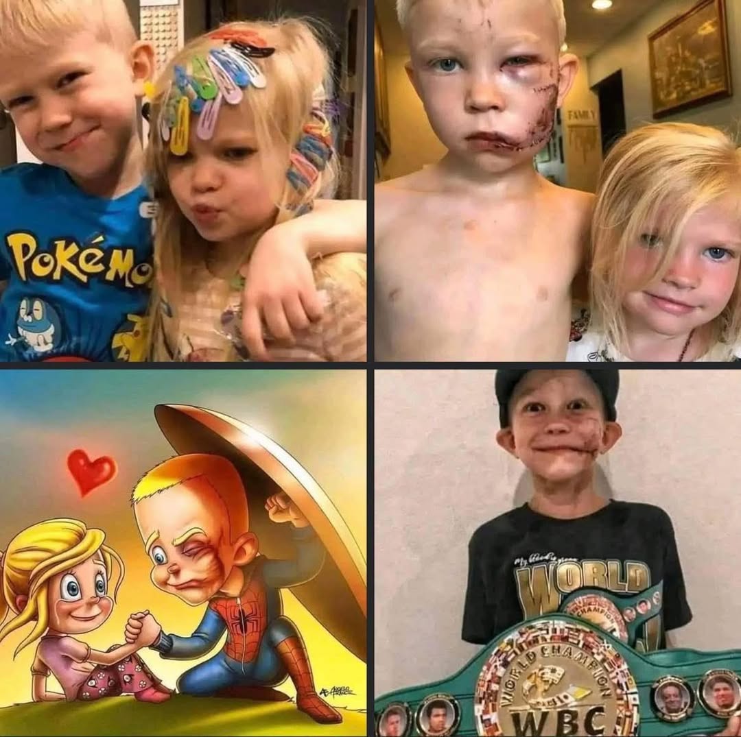 Today, his scars tell a story — not of pain, but of strength, love, and the heart of a true hero. Because real champions aren’t made in the ring — they’re made in the moments when love defeats fear, and innocence becomes greatness. 💚👦🏼👧🏼