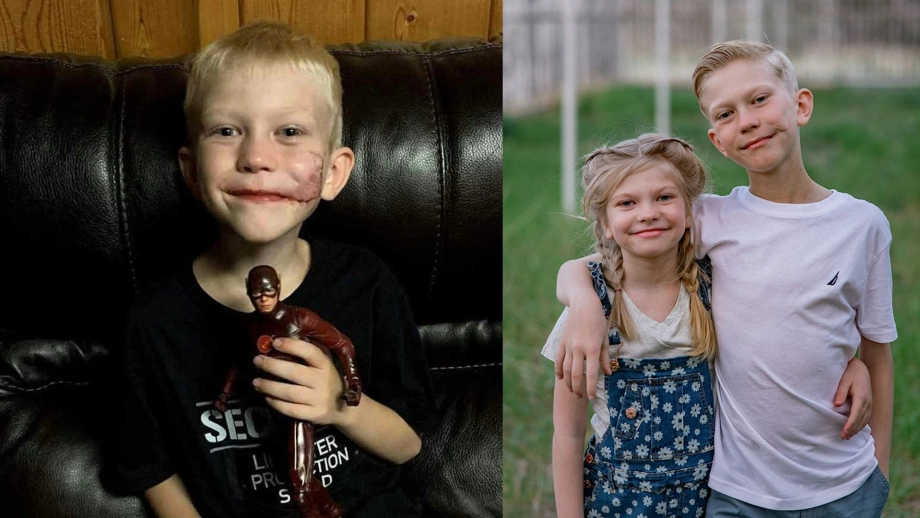 When 6-year-old Bridger Walker saw a German Shepherd charging toward his 3-year-old sister, he didn’t stop to think — he simply moved. 💔 With a courage far beyond his years, he stepped in front of her, using his small body as a shield. The dog lunged, and in those few terrifying seconds, Bridger was bitten again and again — 90 stitches across his face and body. Yet, he never let go.