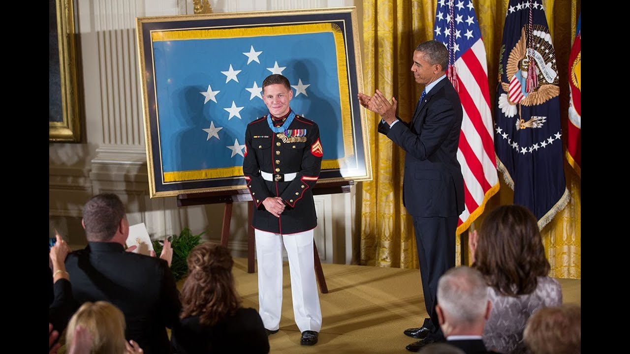 Over 40 surgeries later, Kyle stood strong once again, earning the Medal of Honor from President Obama  .
