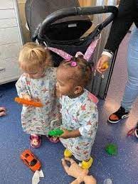 And then, something beautiful happened. The moment their eyes met, these two little warriors reached for each other โ holding hands, giggling, and embracing as if theyโd been friends forever. ๐ค๐