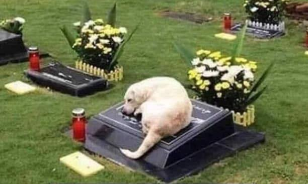 This picture has ascended beyond mere anecdote to become a universal symbol. It represents a concept we all understand and aspire to: a loyalty so pure and profound it does not end when a life does. It is a testament to the depth of grief and unwavering devotion that our animal companions are truly capable of. The dog is not simply resting; he is standing watch. He is waiting. He is remembering. His silent vigil is a promise whispered to the wind: “I’m still here. I will always be here. My watch never ends.”