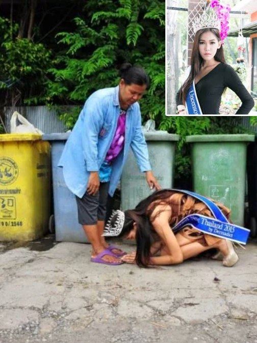 That single moment — a beauty queen kneeling in gratitude among trash — became one of the most powerful images Thailand had ever seen.